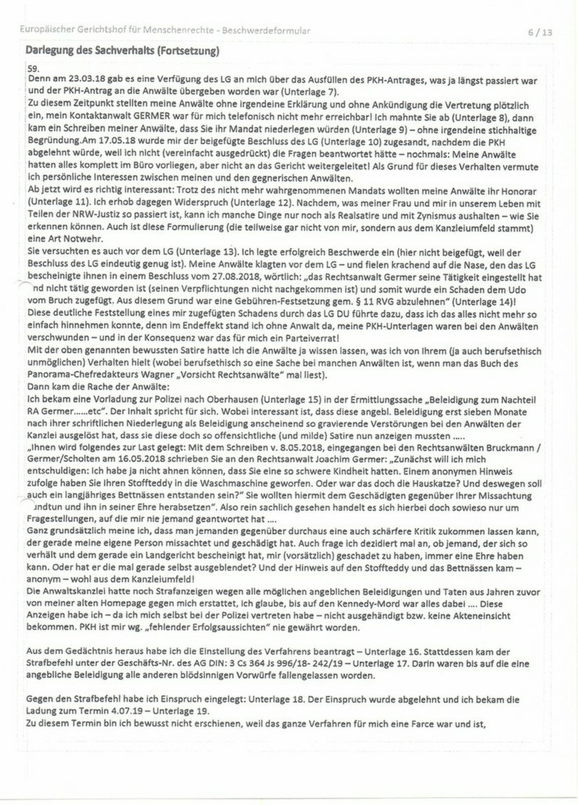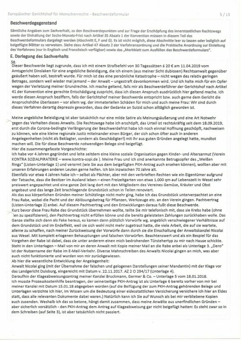 Hier: Beschwerde an den Europäischen Gerichtshof für Menschenrechte (EGMR) in Strasbourg, Seite 3 und 4